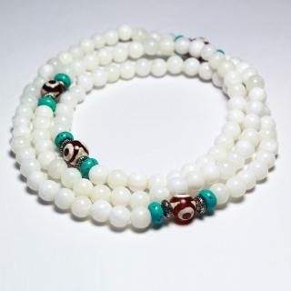 【A1寶石】天眼天珠-白硨磲108念珠-增智慧/招財/廣人際-名師指定款(含開光加持)
