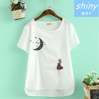 None, ~399超商免運 599折30 輸入代號 M7OJ-IPQJ-ZB18-R5YO【V8052】shiny藍格子-恬靜可人.日系刺繡圖案圓領短袖上衣。在樂天市場的shiny藍格子有最棒的商品,是您省錢的最佳選擇。