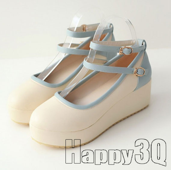 繽紛清新厚底雙扣搭坡跟松糕鞋-米/粉/黃33-43【AAA0032】